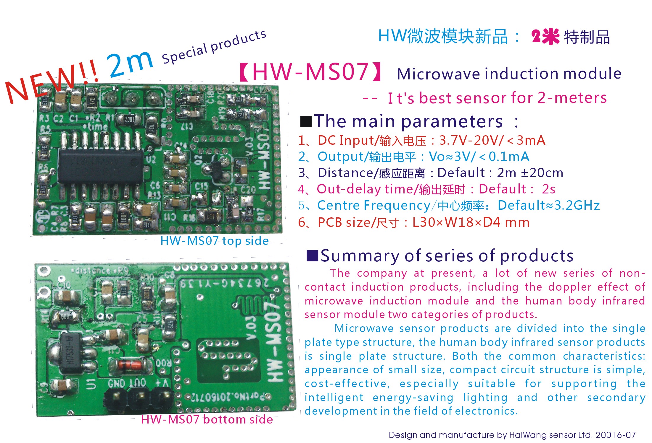 這是我方早期與深圳HW公司技術(shù)合作的產(chǎn)品,屬于高端的微波感應(yīng)模塊,可供有實(shí)際需要的廠商及客戶,作為智能類照明等領(lǐng)域產(chǎn)品的二次開發(fā)選型使用!(詳細(xì)的技術(shù)規(guī)格與具體的應(yīng)用方案,請與我方直接接洽并深入合作!)